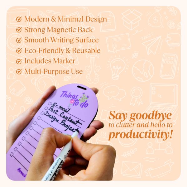 Our Magnetic To-Do List Whiteboard is your perfect daily planner for home or office. Stick it on your fridge or any metal surface to jot down tasks, groceries, reminders, or schedules. Reusable, erasable, and eco-friendly – it comes with a smooth marker. Say goodbye to clutter and hello to productivity!